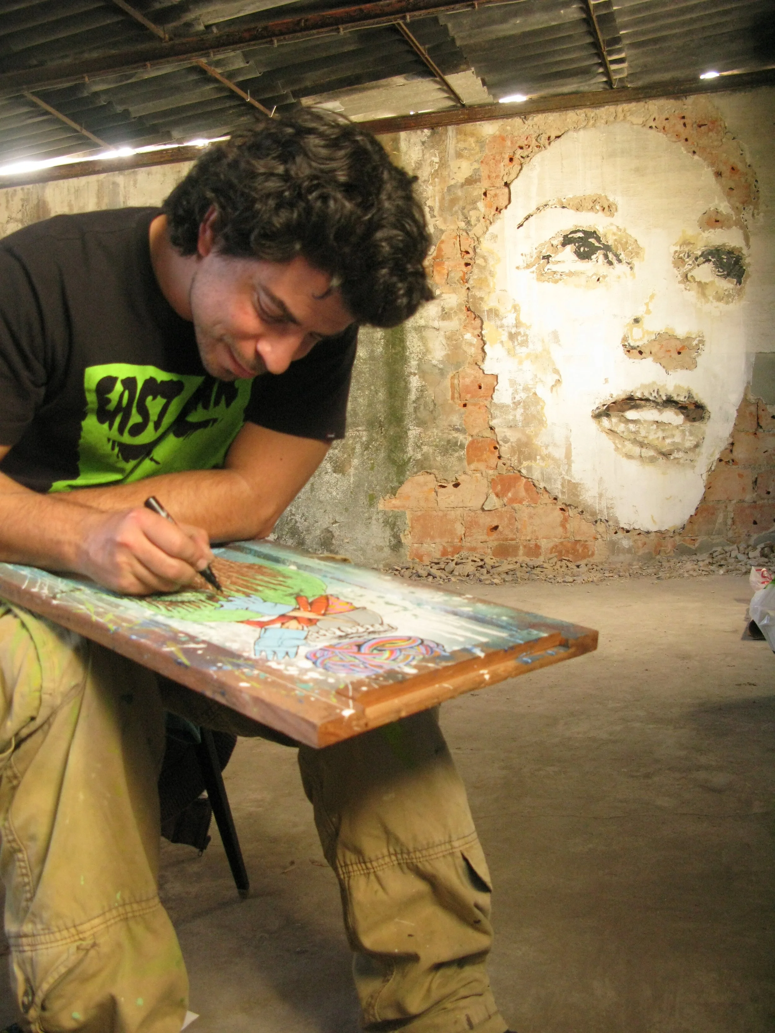 Com uma forte componente de graffiti, conjuga vários elementos de forma exímia nas suas composições.